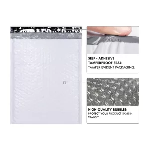 - Inside, a bubble layer provides cushioning for semi-fragile items.